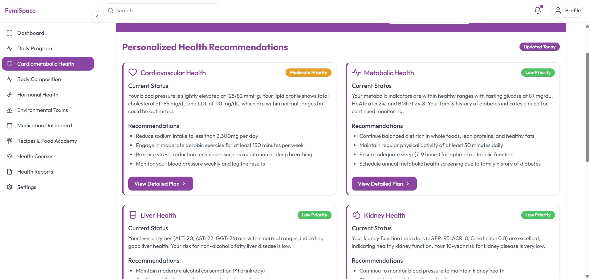 FemiSpace is prevention-first platform for cardiometabolic health in every phase of womanhood—from fertility to menopause. Our whole-person approach blends medical and behavioral science, personalized nutrition, and environmental and lifestyle insights.